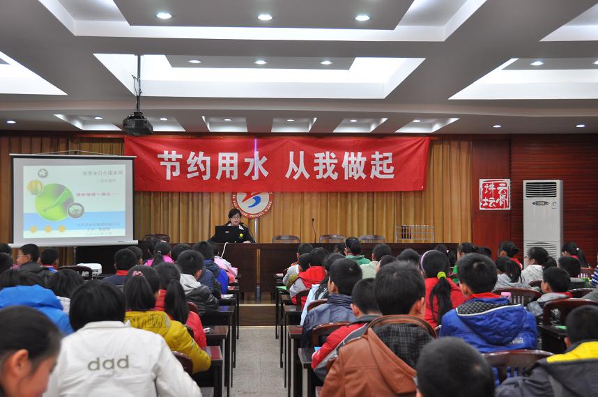 月22至28日是第25屆“中國水周”。期間,集團公司聯合柯巖中心小學開展以“節約用水,從我做起”為主題的水資源保護和節水教育活動,工作人員通過現場演示、展板宣講、幻燈片講課,引導學生們從小認識水污染的危害和節約用水的重要性。