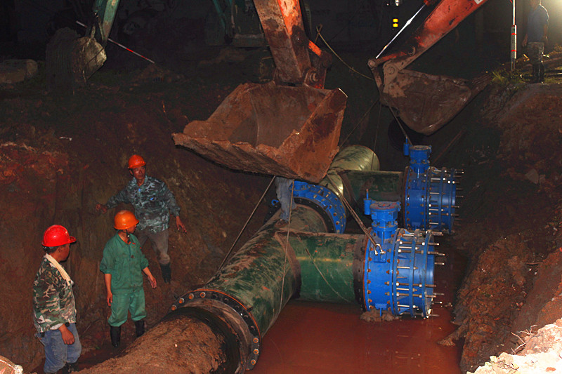 切割管道,更換、焊接新管道,安裝控制閥,沖洗管道……8月7日晚10時(shí),濱海供水公司按計(jì)劃開始小舜江一期馬鞍支線加壓泵站管線兜口工作,至8月8日凌晨7時(shí),經(jīng)過長達(dá)9小時(shí)連夜冒雨緊張作業(yè)后,兜口工作順利完成,停水區(qū)域陸續(xù)通水,且水質(zhì)正常、水壓穩(wěn)定。