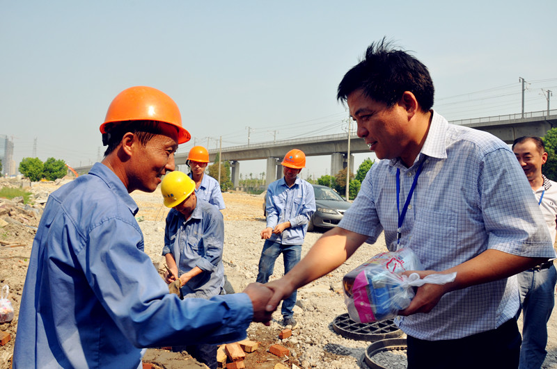 圖為董事長(zhǎng)周儉慰問(wèn)供水管道安裝工 圖為總經(jīng)理單寶子慰問(wèn)排水管網(wǎng)養(yǎng)護(hù)員