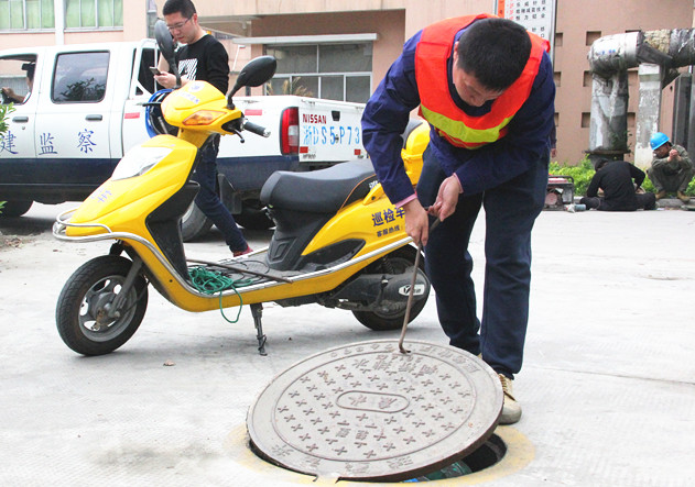 窨井安裝“四道安全防墜裝置”,即:標(biāo)識(shí)牌、防墜網(wǎng)、 自主研發(fā)的旋入式防墜裝置、鑄鐵井蓋。