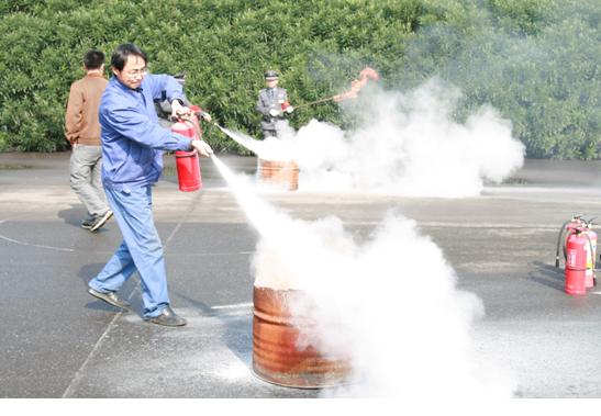 春季消防演習(xí)是水處理公司一項常規(guī)性的安全工作。其出發(fā)點是增強員工的防火意識,提高員工使用干粉滅火器的熟練度。演習(xí)以干粉滅火器近距離油類滅火為主,分為培訓(xùn)和實踐兩個部分。經(jīng)過簡單培訓(xùn),參與演習(xí)的人員均能根據(jù)風(fēng)向合理判斷噴射干粉的科學(xué)位置,并成功實施滅火。