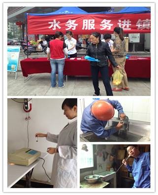 供水便民服務(wù)隊(duì)“三進(jìn)”活動(dòng)由分公司經(jīng)理親自帶隊(duì),實(shí)地走訪(fǎng)了蘭亭鎮(zhèn)婁宮村、蘭亭中學(xué)及紹興縣紅盛紡織有限公司,并為用戶(hù)免費(fèi)提供管網(wǎng)聽(tīng)漏、水質(zhì)檢測(cè)和清洗水龍頭濾網(wǎng)等供水設(shè)施例行維護(hù)等服務(wù),得到了用戶(hù)的一致好評(píng)。此次“三進(jìn)”活動(dòng),還推出“進(jìn)村入戶(hù)”用水設(shè)施檢修服務(wù)活動(dòng),上門(mén)免費(fèi)對(duì)婁宮村的3戶(hù)村民和1家餐館開(kāi)展水嘴、抽水馬桶檢查,水質(zhì)檢測(cè)及供水管道改道換裝等服務(wù),得到了村民的高度贊揚(yáng)。